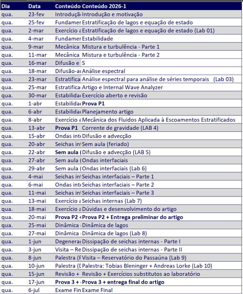 Graduação Engenharia Ambiental: TEA042C: Tópicos Especiais: Dinâmica de Lagos